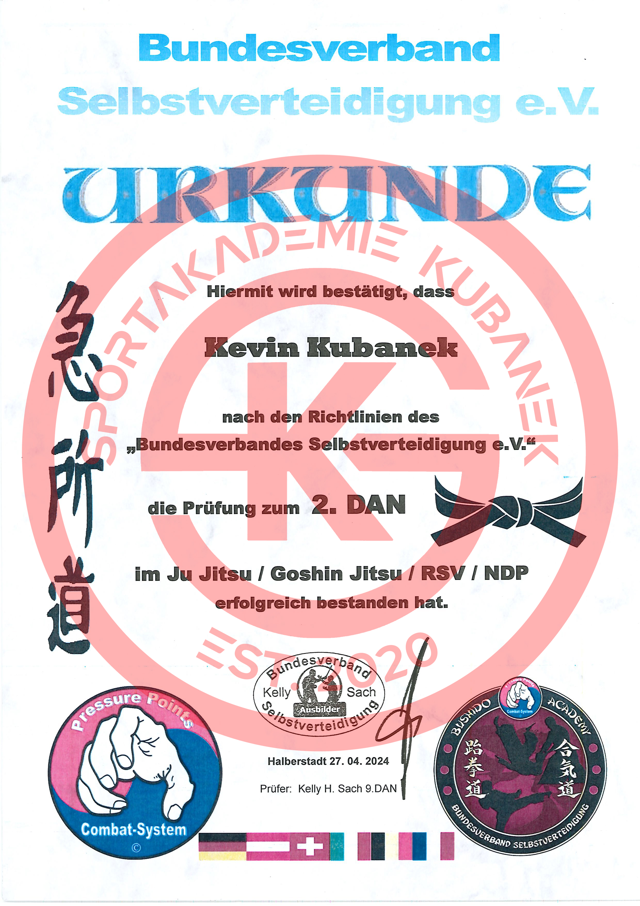 - 27.04.2024 2. Dan im Ju Jitsu / Goshin Jitsu / Reale Selbstverteidigung und Nervendruckpunkte beim Bundesverband Selbstverteidigung e.V.