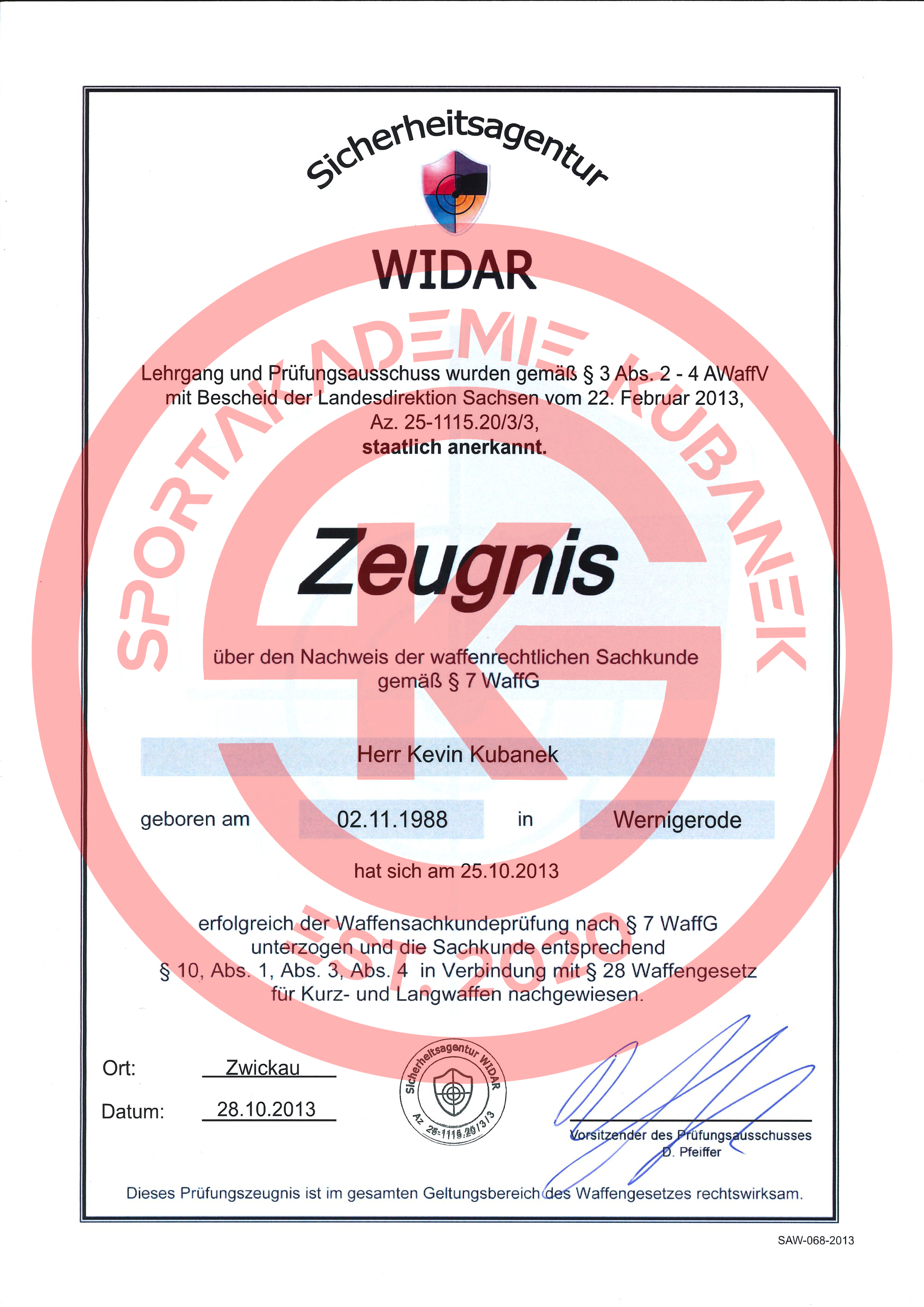 - Sachkundeprüfung gemäß § 34a GewO
